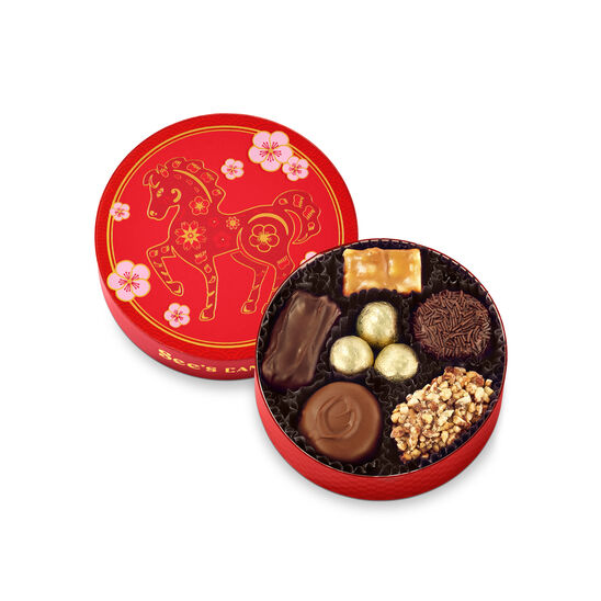 Celebrate the Year of the Horse with this charming gift box, packed with chocolates and nutty treats. Adorned with a festive horse in shimmering gold foil, it’s a wonderful way to share good fortune and sweet wishes this Lunar New Year. Approximately 9 pieces*: Milk Orange Cream, Milk Bordeaux™, Dark Almond Nougat, Dark Walnut Square, Toffee-ette®, Milk Chocolate Foil Balls (4). *If we run into shortages, we may make replacements or adjust piece counts. Don’t fret. You’ll always get an assortment fully filled with deliciousness.
